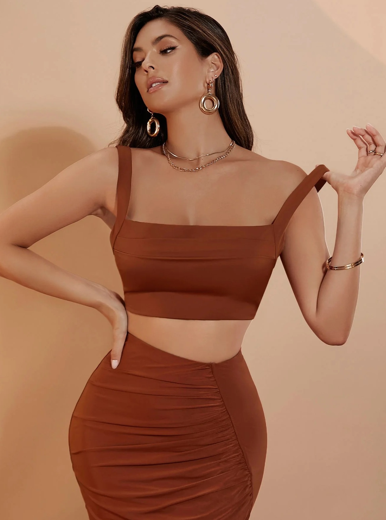 Color: Brown Length: Crop Composition: Elastane, Polyester Material: Fabric Fabric: Non-Stretch Sheer: No