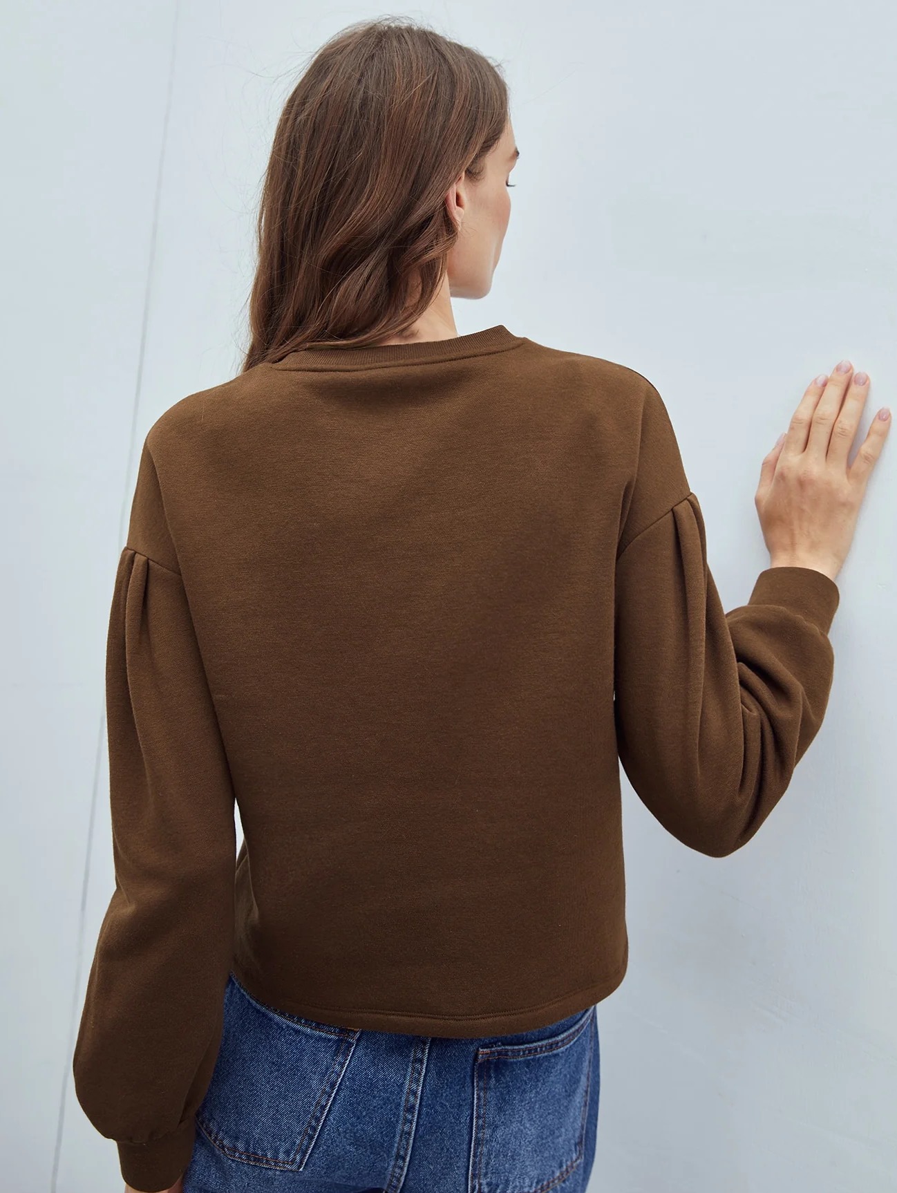 Sleeve Type: Bishop Sleeve Style: Casual Composition: Cotton, Elastane Material: Fabric Fabric: Non-Stretch Sleeve Length: Long Sleeve Sheer: No Pattern Type: Plain Type: Pullovers Placket Type: Pullovers Length: Regular Fit Type: Regular Fit Neckline: Round Neck Season: Spring/Fall Location: All Color: Chocolate Brown Fabric Type: Knitting Care Instructions: Machine wash or professional dry clean
