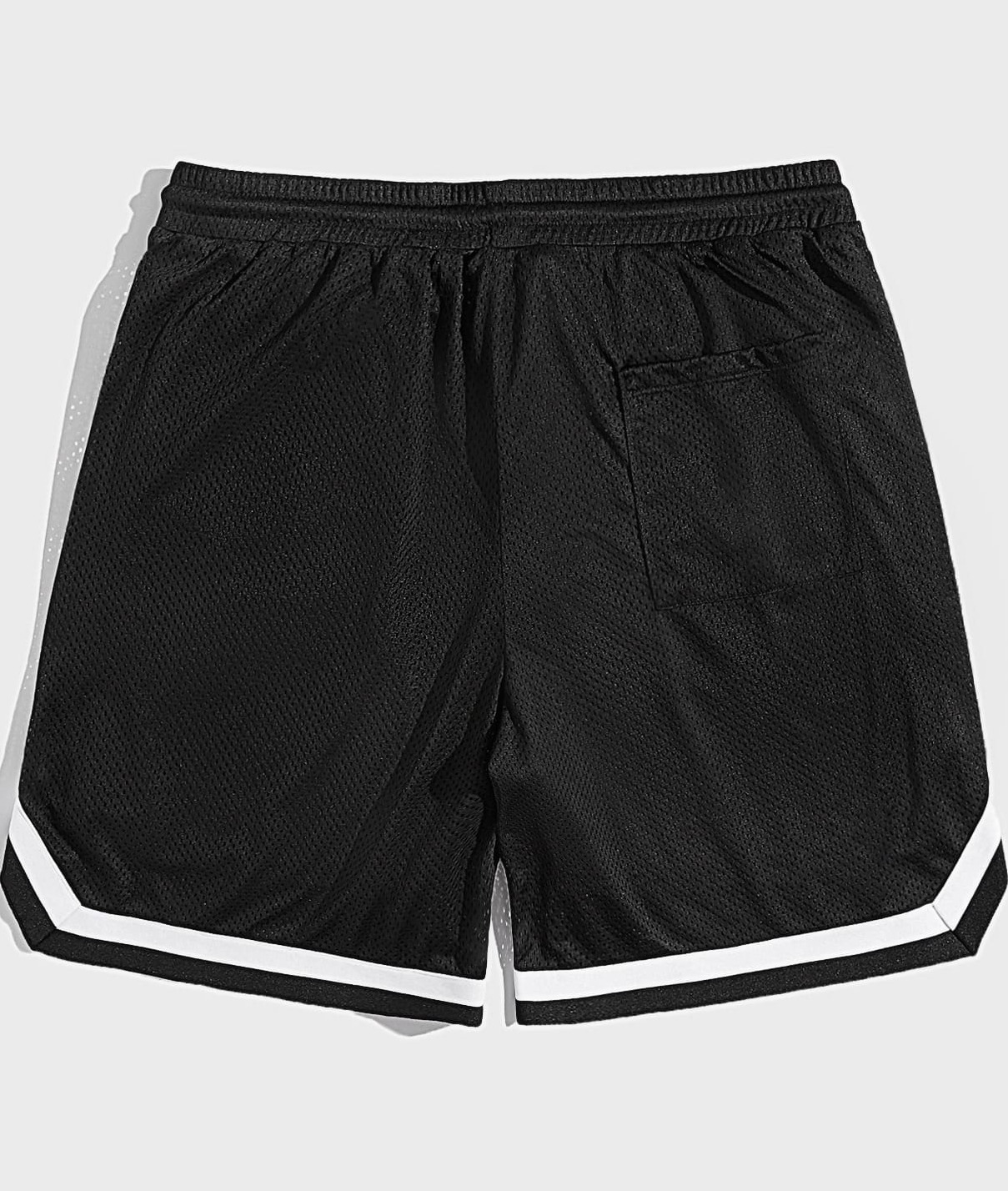 Color: Black Style: Casual Details: Drawstring, Pocket Closure Type: Drawstring Waist Fabric: Slight Stretch Pattern Type: Letter Waist Line: Natural Sheer: No Composition: Polyester Lining: Polyester Fit Type: Regular Fit Type: Track Shorts Location: All Fabric Type: Knitting Care Instructions: Machine wash or professional dry clean Material: Knitted Fabric Length: Bermuda shorts