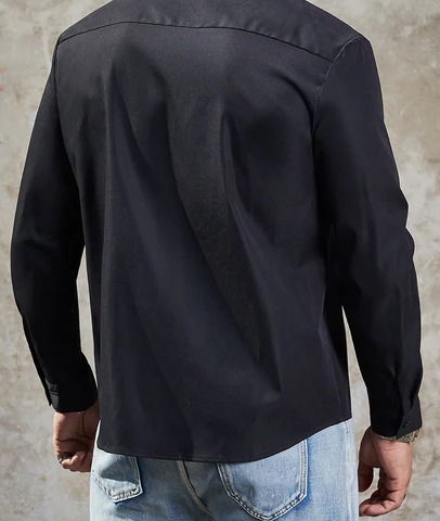 Color: Black Style: Casual Neckline: Collar Material: Fabric Fabric: Slight Stretch Sleeve Length: Long Sleeve Sheer: No Pattern Type: Plain Composition: Polyester Length: Regular Fit Type: Regular Fit Type: Shirt Placket: Single Breasted Season: Spring Sleeve Type: Regular Sleeve Placket Type: Placket Details: Button Front Location: All Fabric Type: Woven Care Instructions: Machine wash or professional dry clean