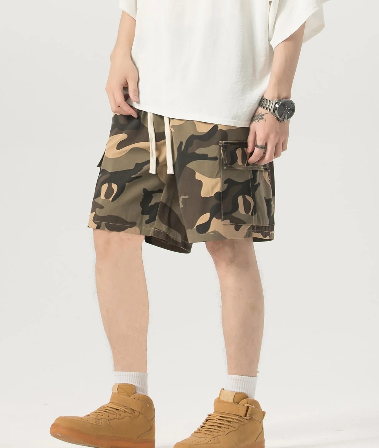 Men Camo Print Flap Pocket Cargo Shorts