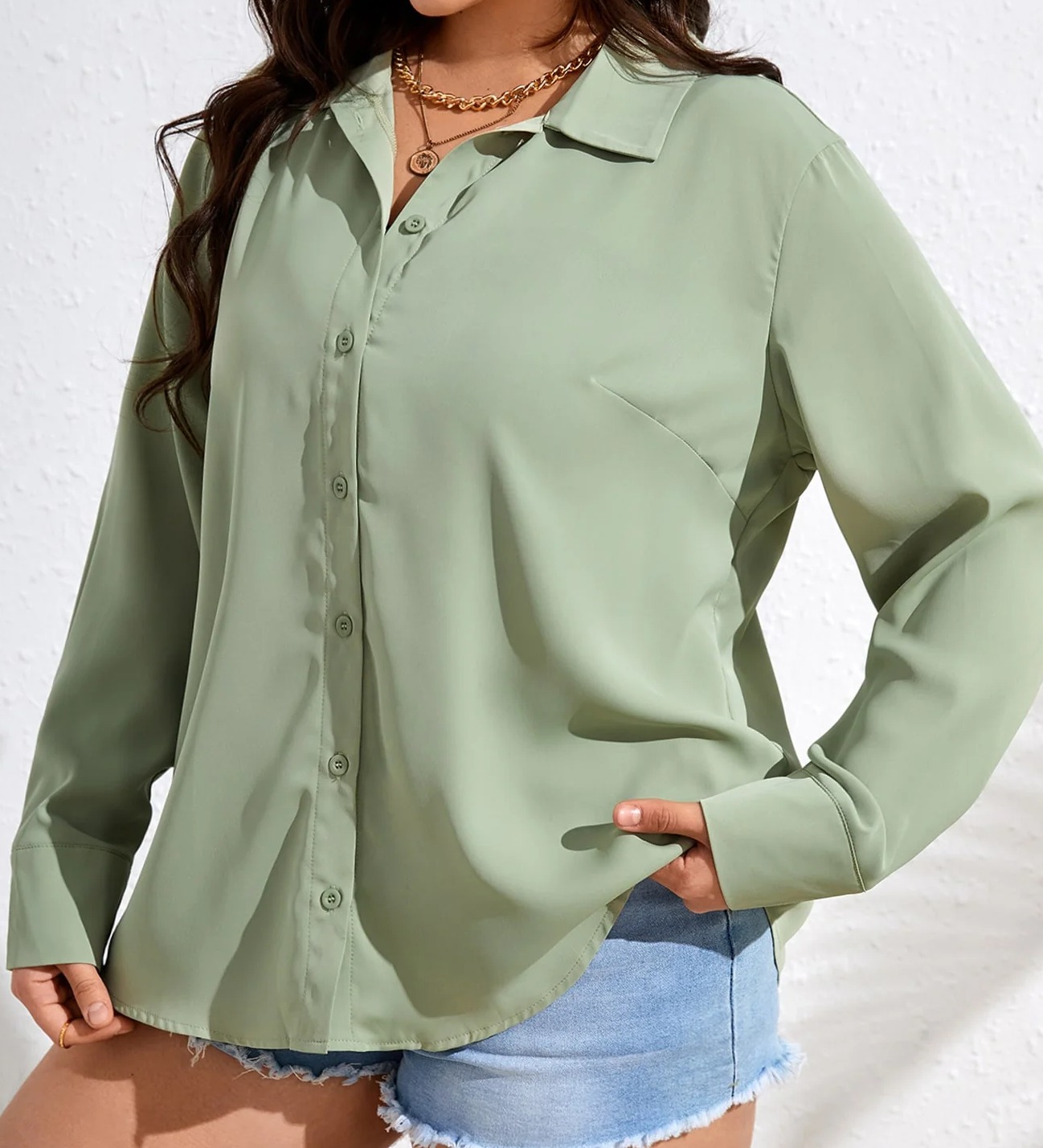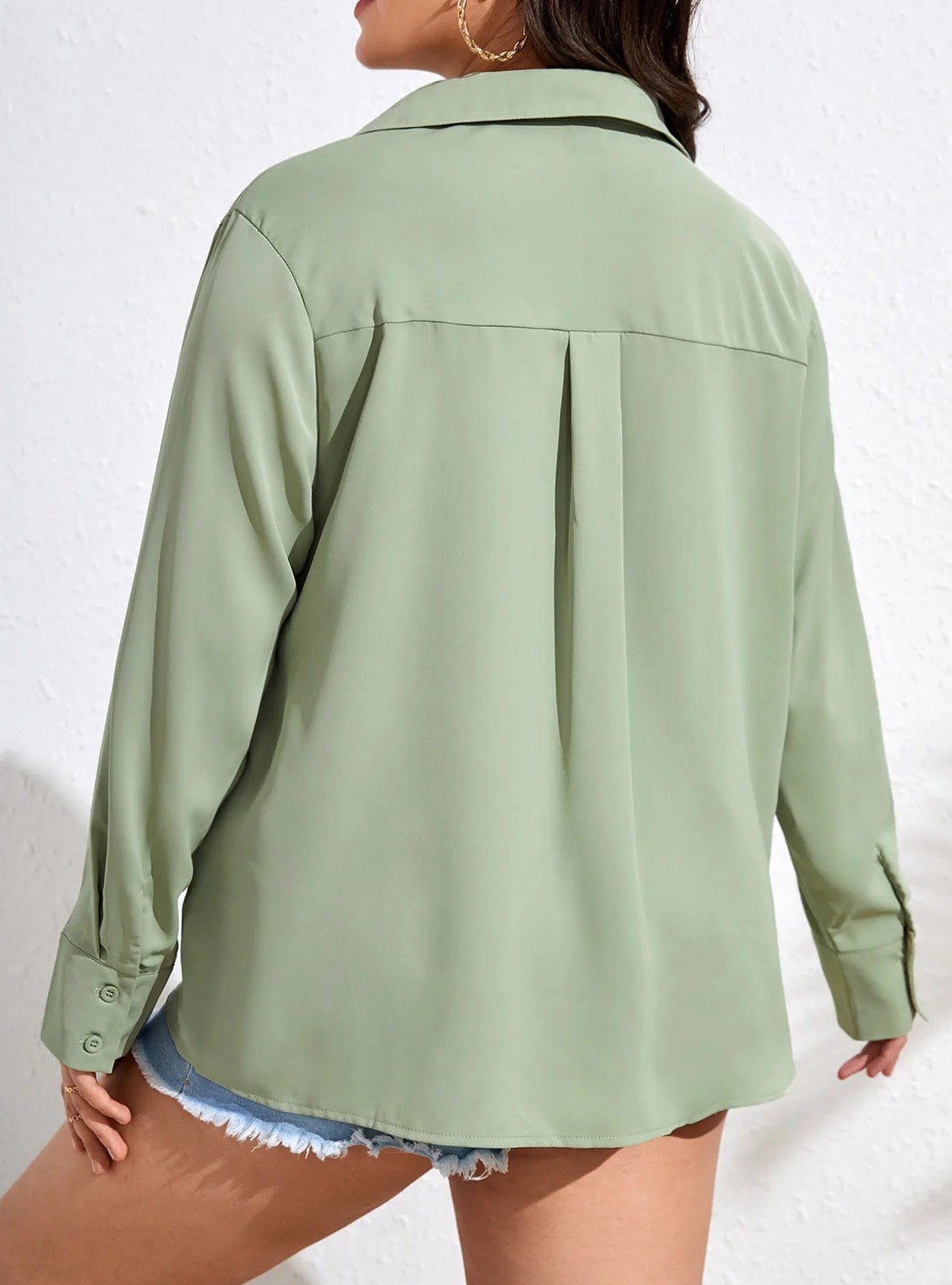 Style: Casual Neckline: Collar Composition: Elastane, Polyester Fabric: Slight Stretch Length: Long Sleeve Length: Long Sleeve Sheer: No Pattern Type: Plain Fit Type: Regular Fit Type: Shirt Sleeve Type: Regular Sleeve Details: Button Front Location: All Color: Mint Green Fabric Type: Woven Care Instructions: Hand wash,do not dry clean Material: Woven Fabric