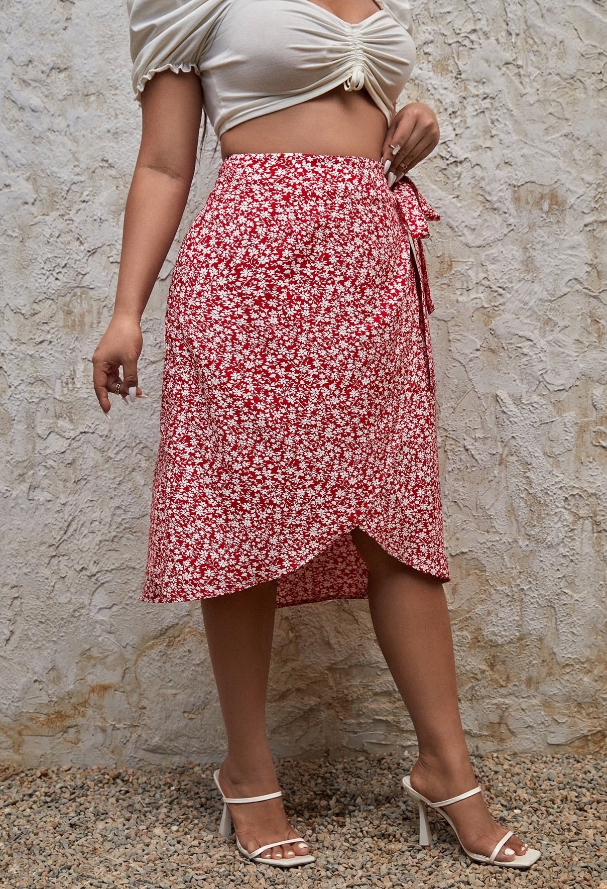 Plus Ditsy Floral Tie Side Wrap Skirt