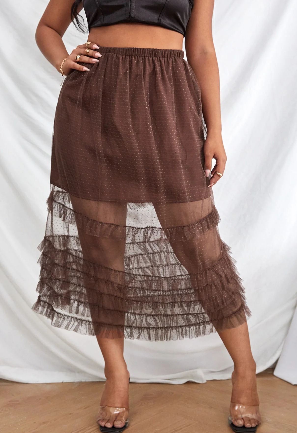 Plus Layered Ruffle Mesh Skirt
