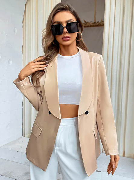 Placket: Double Breasted Details: Double Button Style: Elegant Material: Fabric Fabric: Non-Stretch Color: Khaki Length: Long Sleeve Length: Long Sleeve Sheer: No Pattern Type: Plain Composition: Polyester, Spandex Type: Regular Fit Type: Regular Fit Neckline: Shawl Collar Sleeve Type: Regular Sleeve Location: All Fabric Type: Woven Care Instructions: Hand wash or professional dry clean Skc: sw2211286116023686 Goods id: 12927859