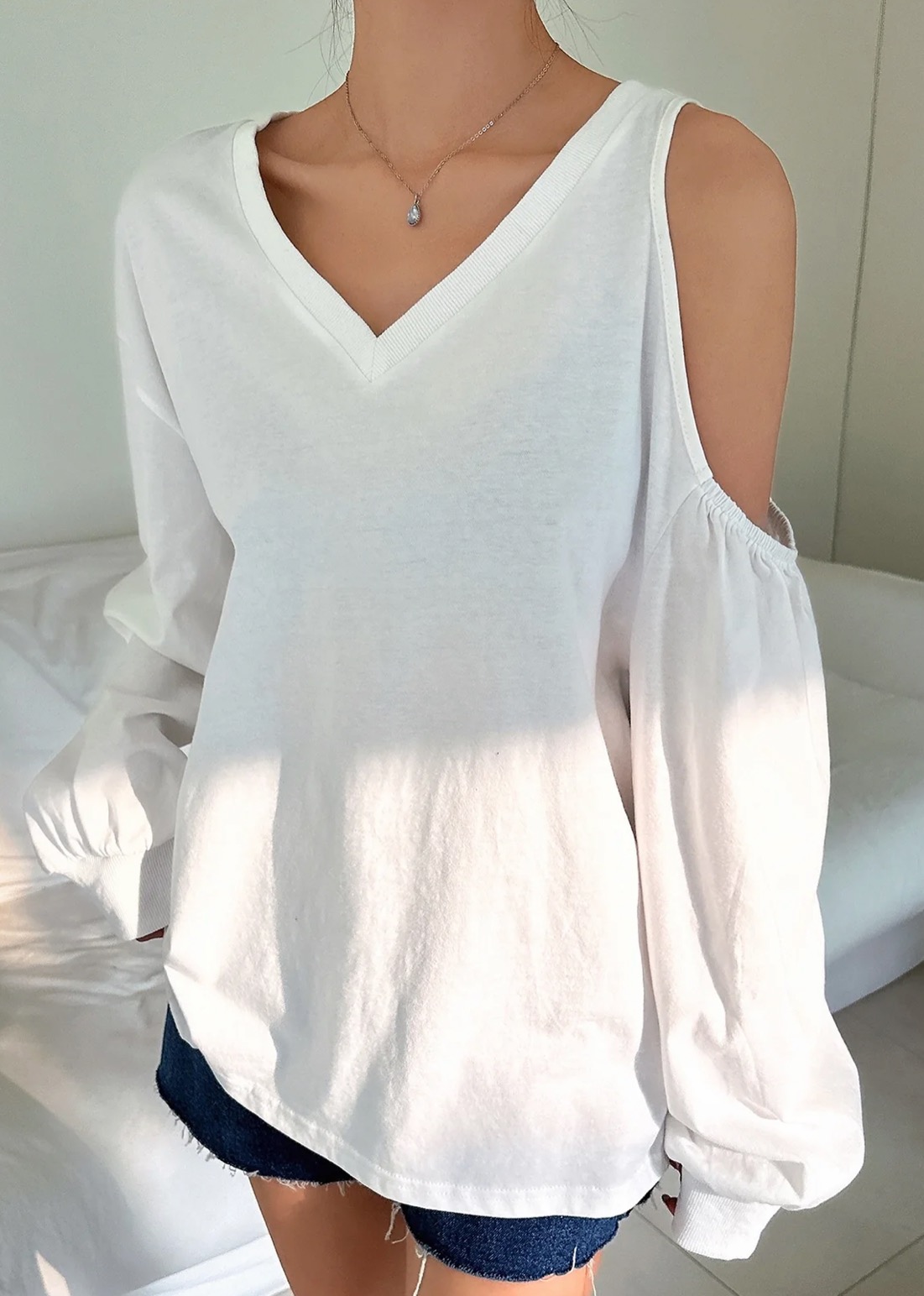 Style: Casual Composition: Cotton Details: Cut Out Material: Fabric Fabric: Non-Stretch Sleeve Length: Long Sleeve Sheer: No Pattern Type: Plain Type: Pullovers Placket Type: Pullovers Length: Regular Fit Type: Regular Fit Neckline: V neck Color: White Location: All Sleeve Type: Drop Shoulder Fabric Type: Knitting Care Instructions: Machine wash or professional dry clean Skc: sw2211221015551599 Goods id: 12863624