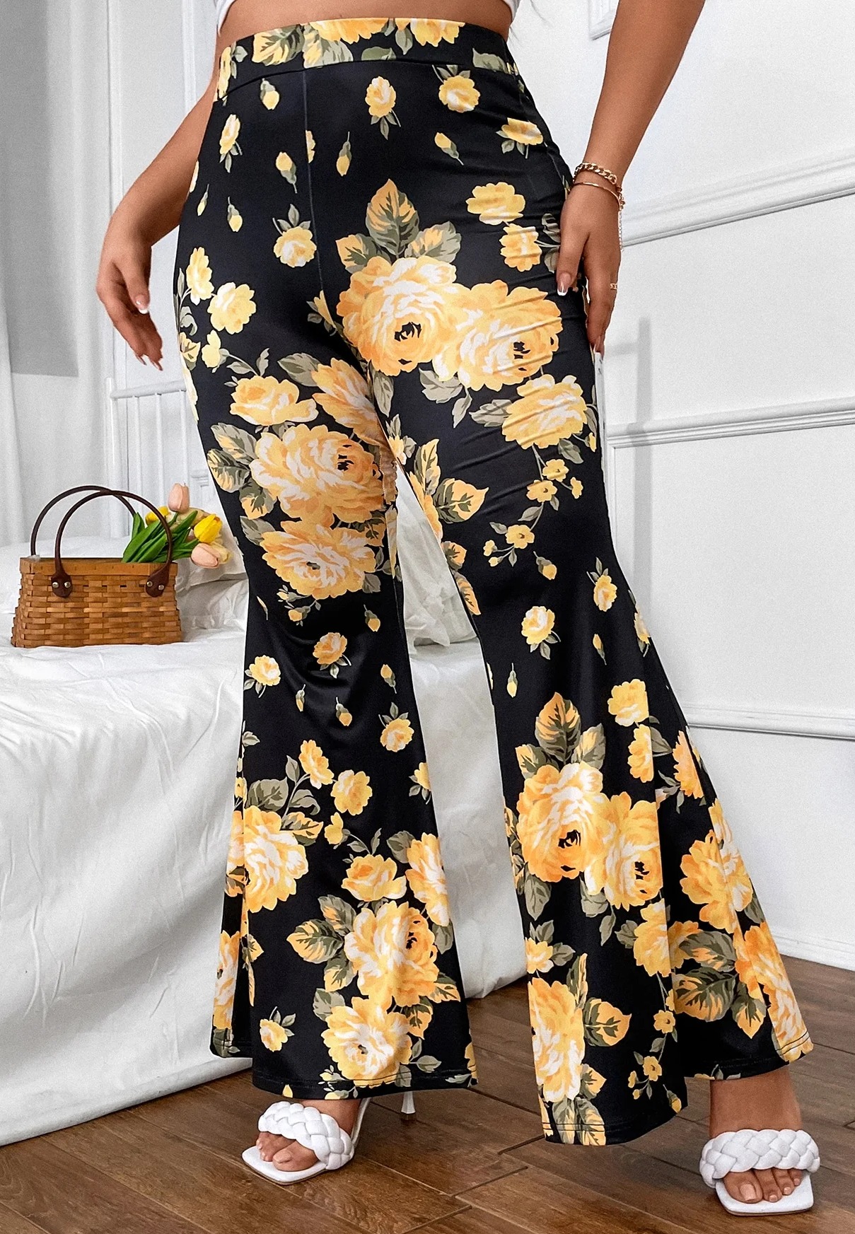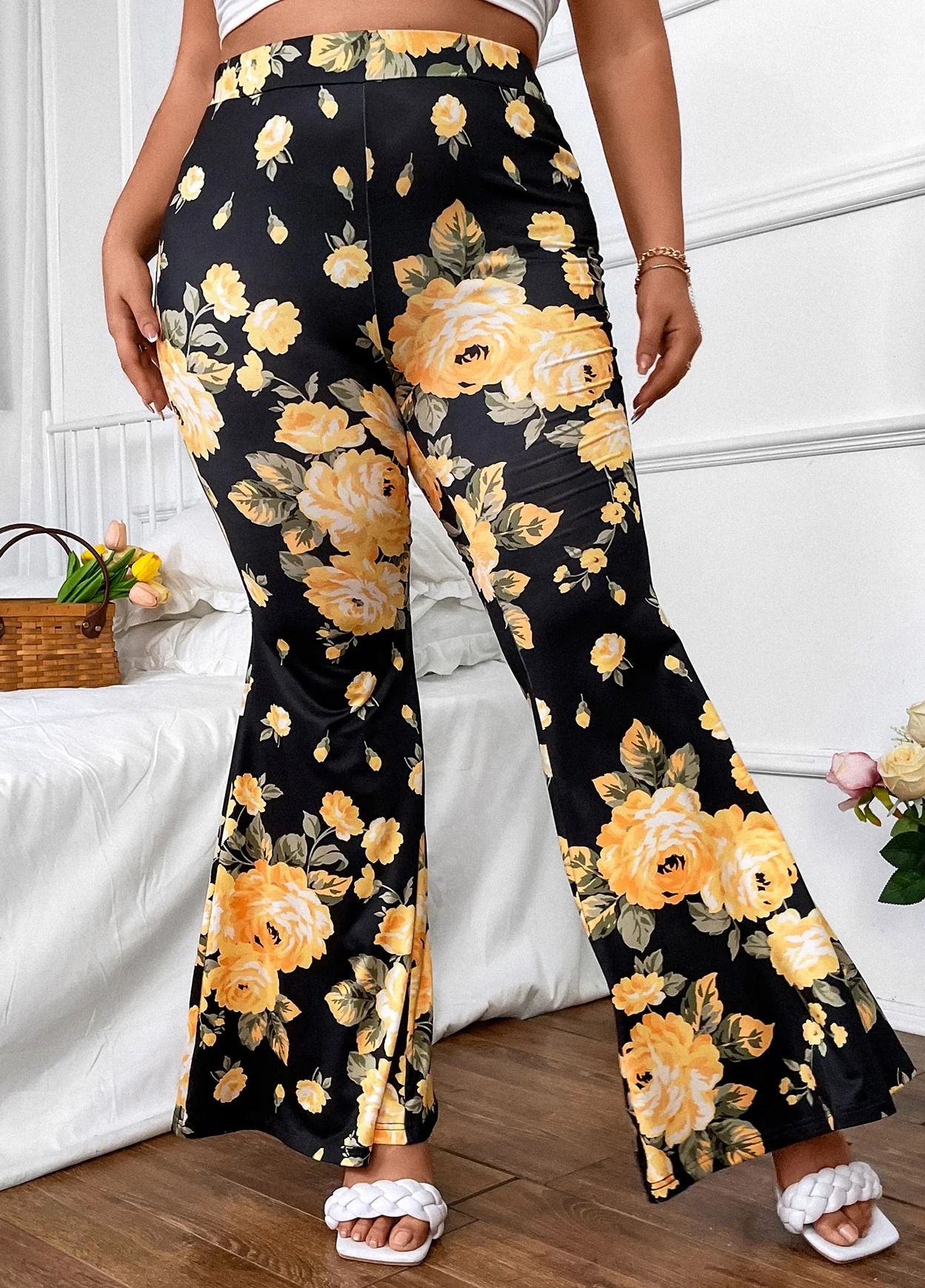 Composition: Elastane, Polyester Fabric: High Stretch Type: Flare Leg Pattern Type: Floral, All Over Print Waist Line: High Waist Length: Long Color: Multicolor Sheer: No Fit Type: Regular Fit Style: Boho Location: All Fabric Type: Woven Body: Unlined Care Instructions: Machine wash or professional dry clean Material: Knitted Fabric