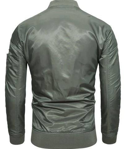 Color: Army Green Type: Bomber Style: Casual Material: Fabric Fabric: Non-Stretch Sleeve Length: Long Sleeve Sheer: No Pattern Type: Plain Composition: Polyester Lining: Polyester Length: Regular Fit Type: Regular Fit Season: Spring/Fall Details: Zipper Placket: Zipper Sleeve Type: Regular Sleeve Neckline: Baseball Collar Location: All Fabric Type: Woven Body: Lined Care Instructions: Machine wash or professional dry clean