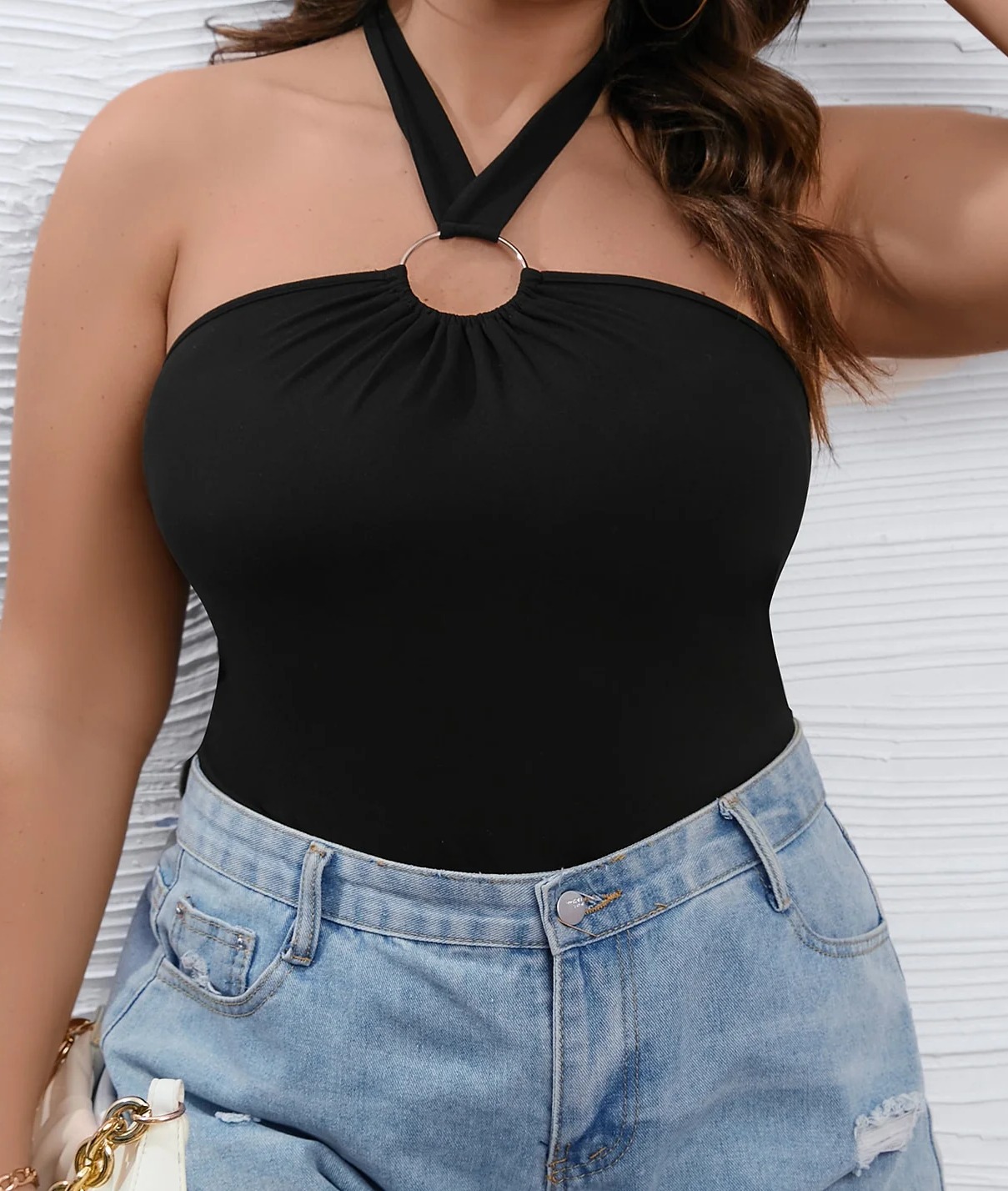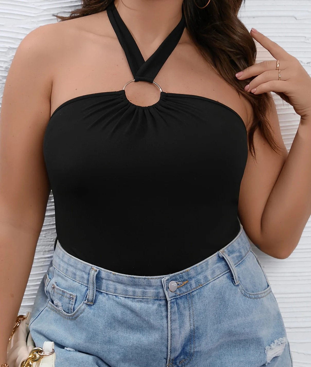 Plus Ring Linked Tie Backless Halter Bodysuit
