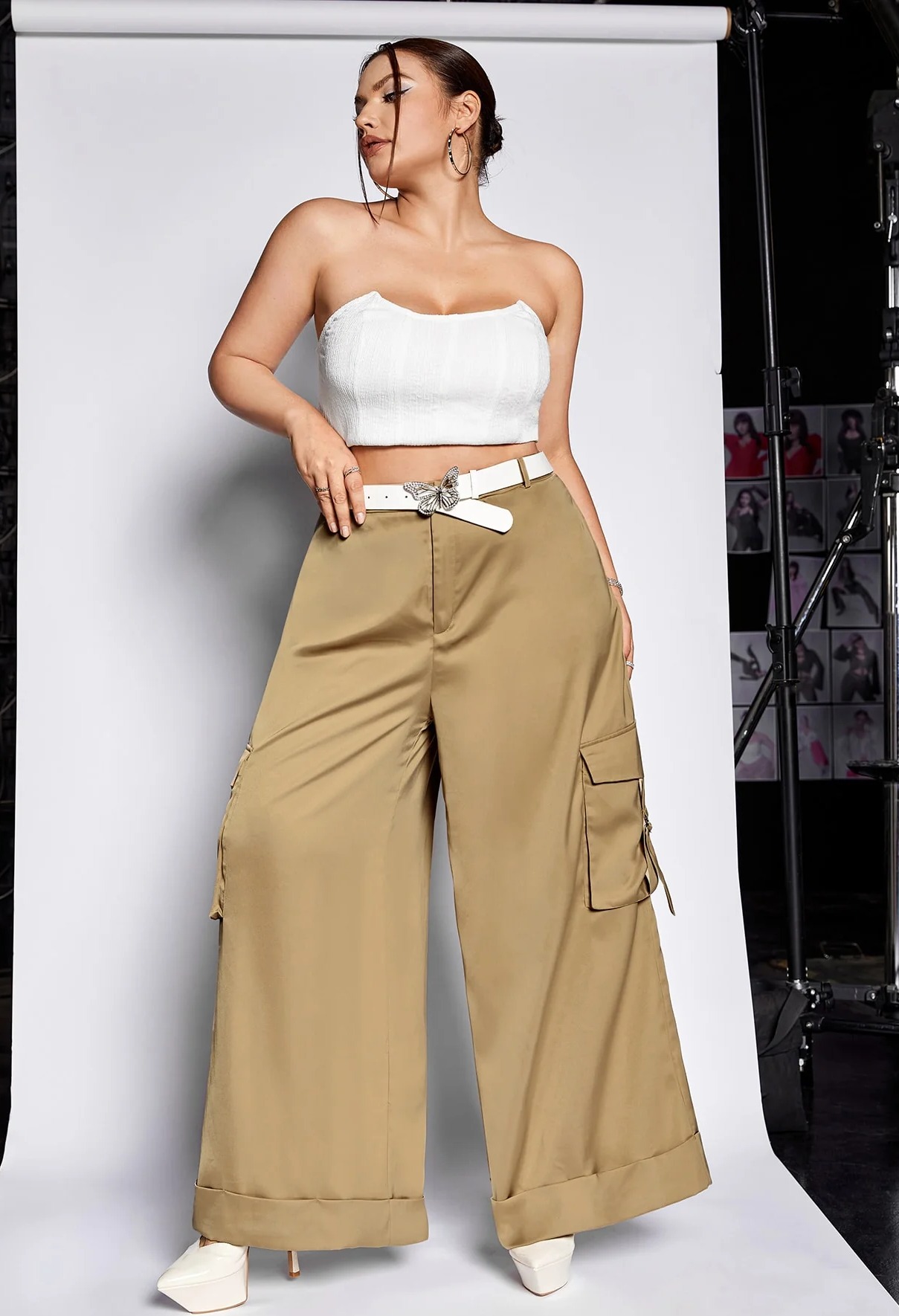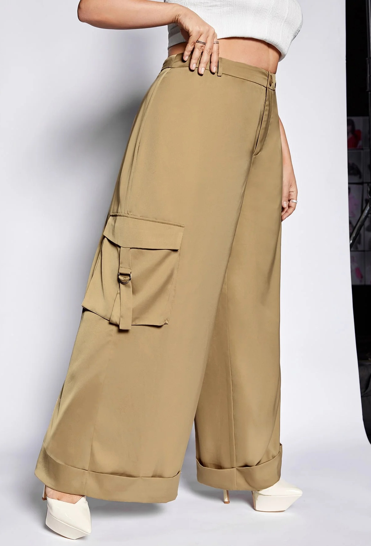 Plus Flap Pocket Side Wide Leg Pants Without Belt