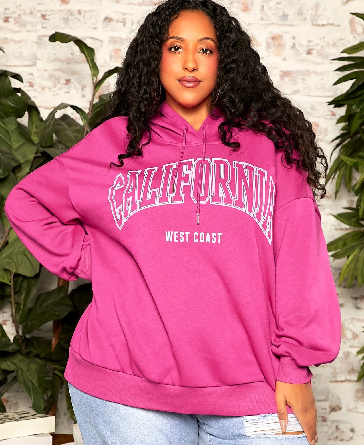 Plus Letter Graphic Drop Shoulder Drawstring Hoodie