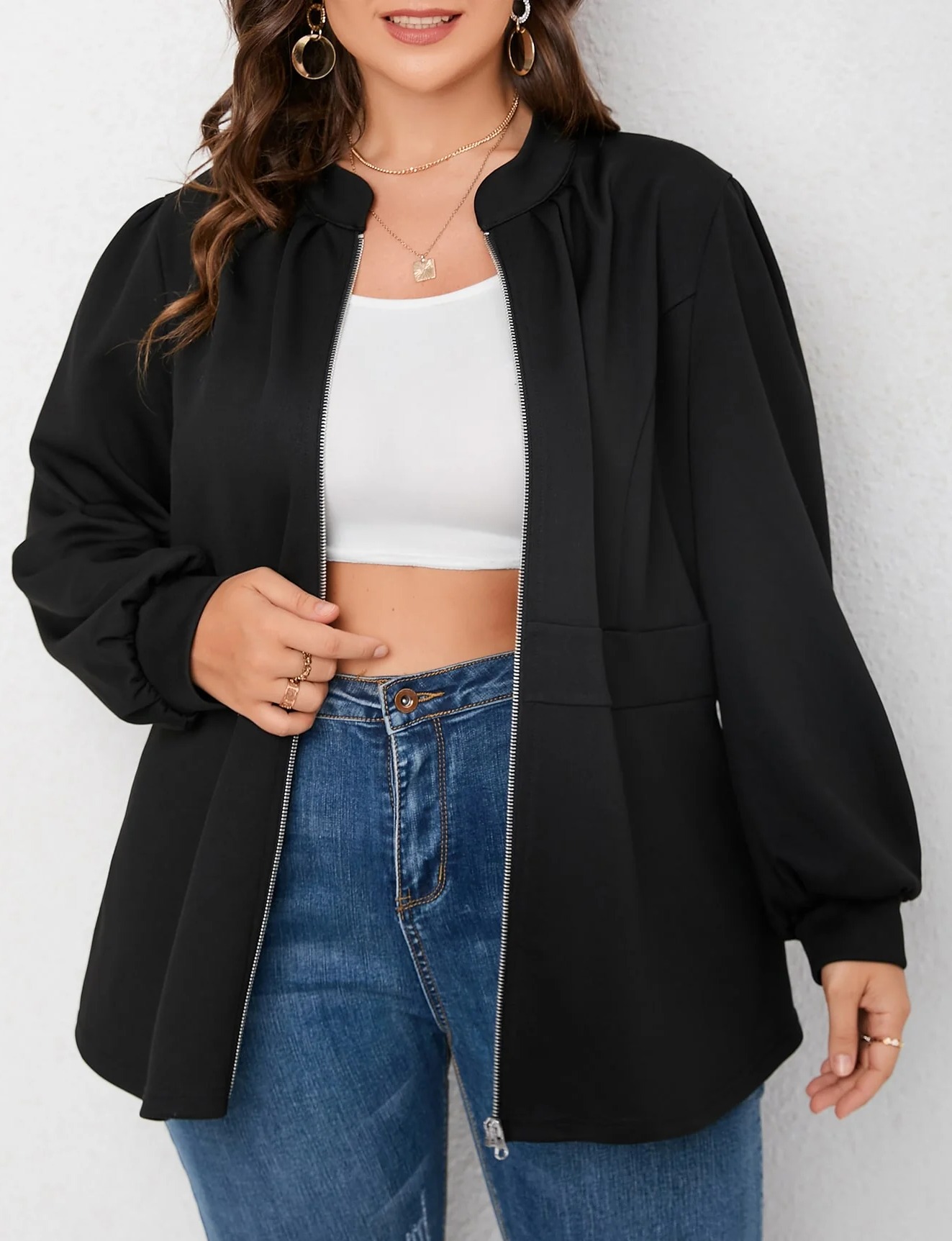 Plus Zip Up Ruffle Hem Bomber Jacket