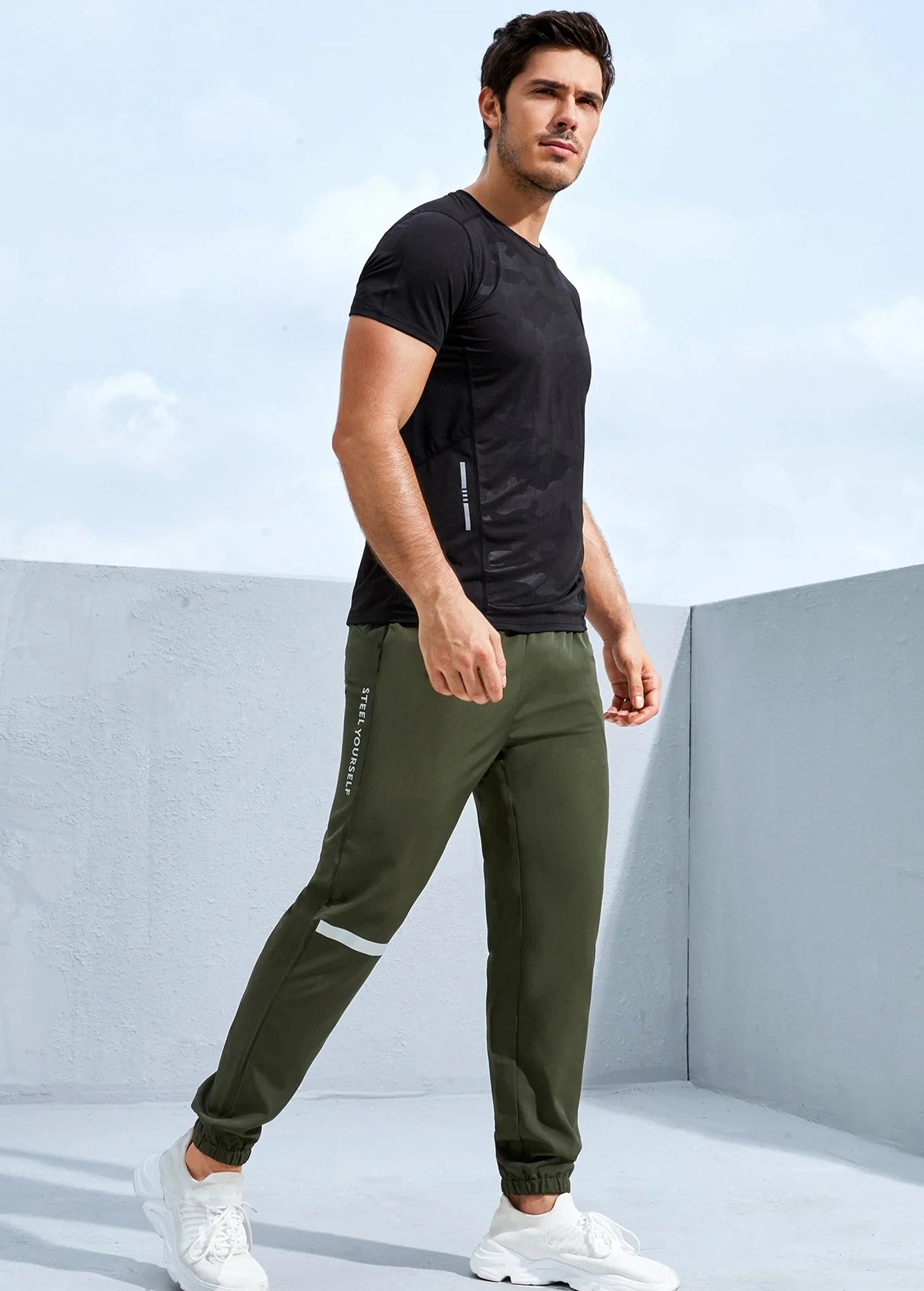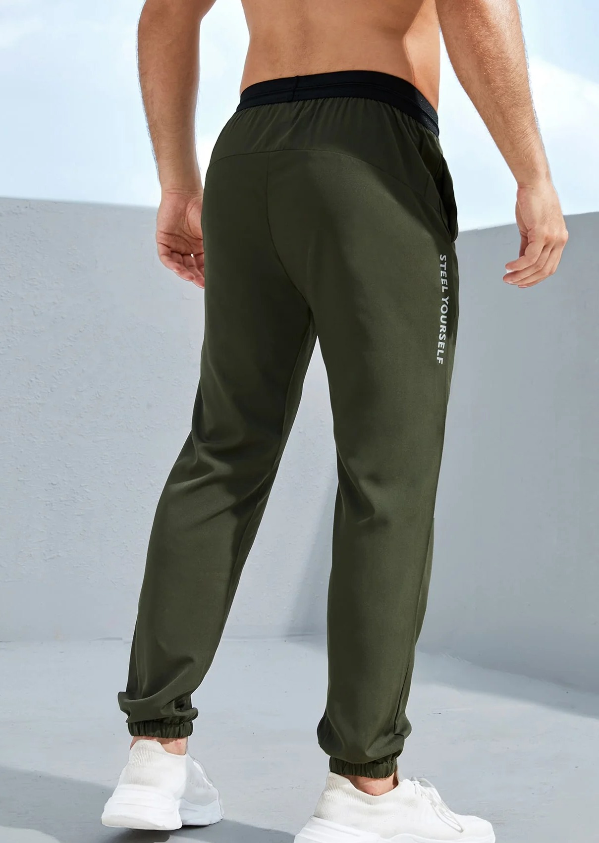 Color: Army Green Material: Fabric Fabric: Non-Stretch Length: Long Waist Line: Natural Sheer: No Composition: Polyester, Spandex Fit Type: Regular Fit Pattern Type: Slogan Location: All Type: Sports Pants Fabric Type: Woven Care Instructions: Machine wash, do not dry clean Body: Unlined
