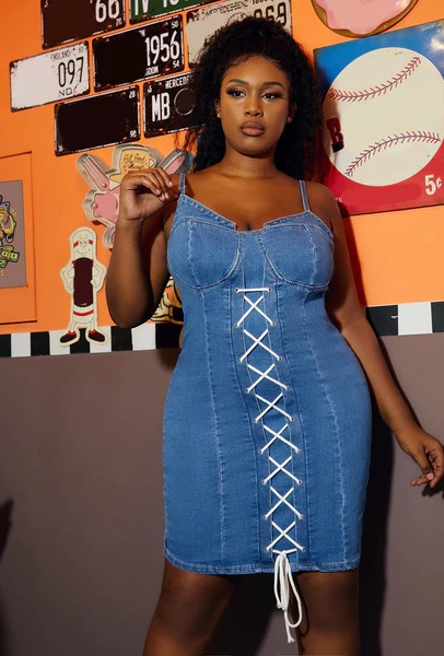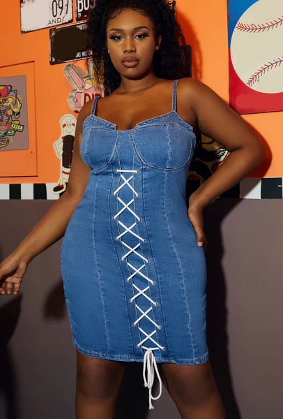 Details: Backless, Lace Up, Zipper Type: Bodycon Composition: Cotton, Elastane, Polyester Material: Denim Waist Line: High Waist Sheer: No Hem Shaped: Pencil Pattern Type: Plain Style: Sexy Length: Short Sleeve Length: Sleeveless Fit Type: Slim Fit Neckline: Spaghetti Strap Location: All Users-Romwe: Girly, Edgy Color: Medium Wash Fabric Type: Cowboy Care Instructions: Machine wash, do not dry clean Fabric: Medium Stretch