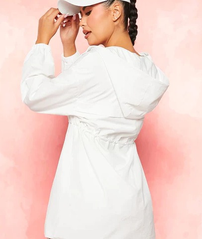 Details: Drawstring, Zipper Composition: Elastane, Polyamide Fabric: Non-Stretch Neckline: Hooded Length: Long Sleeve Length: Long Sleeve Sheer: No Fit Type: Oversized Pattern Type: Plain Color: White Type: Seamless Placket Type: Placket