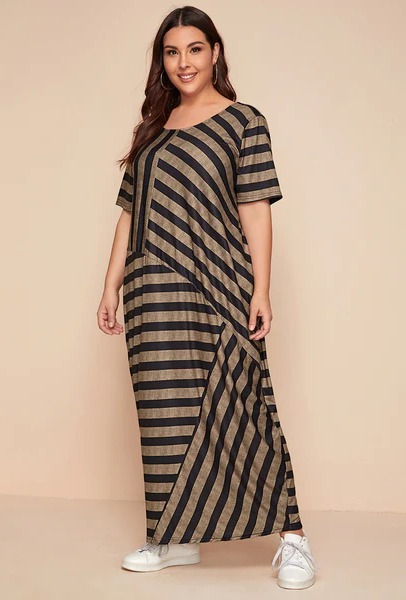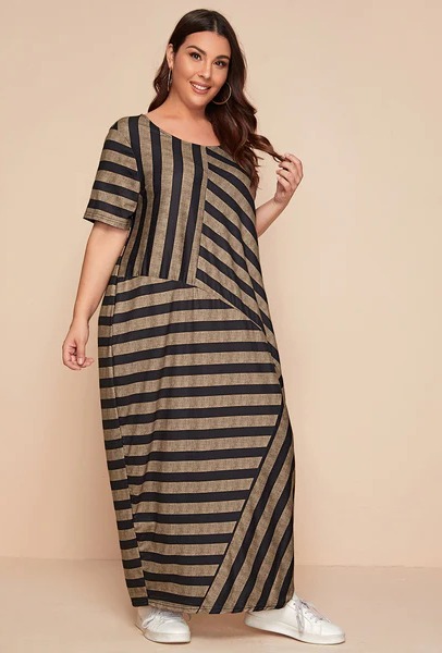Fabric: Slight Stretch Length: Maxi Color: Multicolor Sheer: No Composition: Polyester, Spandex Fit Type: Regular Fit Neckline: Round Neck Sleeve Length: Short Sleeve Season: Spring/Fall Pattern Type: Striped Arabian Clothing: Yes Sleeve Type: Regular Sleeve Style: Modest Location: AR Fabric Type: Knitting Care Instructions: Machine wash or professional dry clean Material: Knitted Fabric Type: Arabian Dress