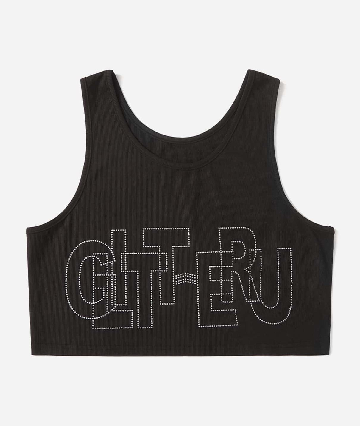 Color: Black Style: Casual Length: Crop Composition: Elastane, Polyester Material: Fabric Fabric: Slight Stretch Pattern Type: Letter Sheer: No Details: Rhinestone Neckline: Round Neck Sleeve Length: Sleeveless Fit Type: Slim Fit Location: All Fabric Type: Knitting Care Instructions: Machine wash or professional dry clean