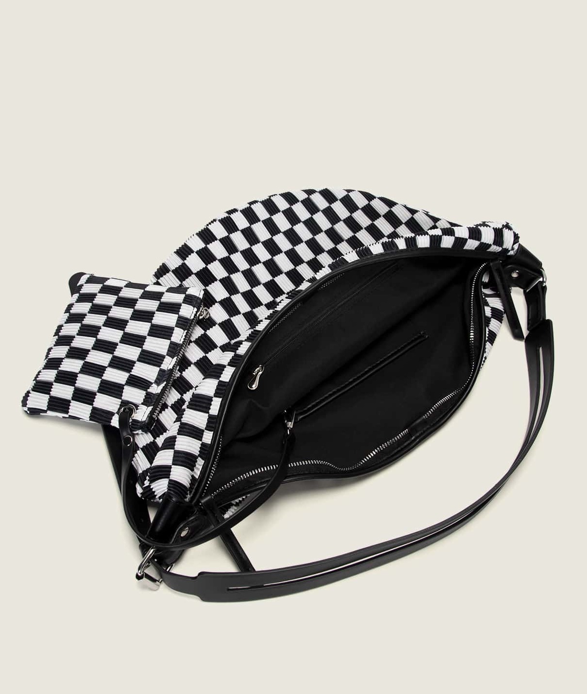 Strap Type: Adjustable Color: Black and White Material: Fabric Bag Size: Large Magnetic: No Pattern Type: Plaid Composition: Polyamide
