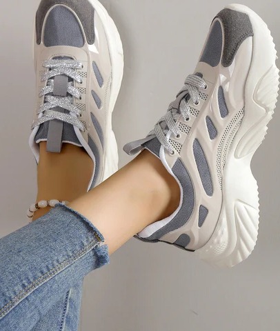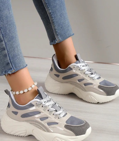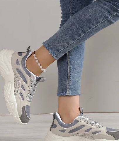 Women Non-slip Lace Up Chunky Shoes, Sporty Outdoor Fabric Sports Shoes