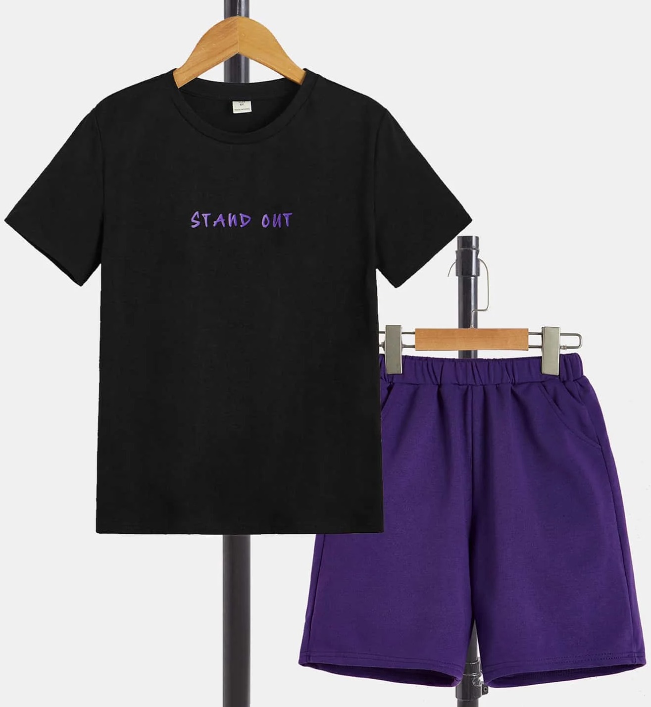 Pattern Type: Cartoon, Slogan Style: Casual Fabric: Slight Stretch Color: Multicolor Sheer: No Details: Pocket Fit Type: Regular Fit Neckline: Round Neck Sleeve Length: Short Sleeve Top Type: Tee Arabian Clothing: Yes Sleeve Type: Regular Sleeve Bottom Type: Track Shorts Location: All Number of Pieces: 2 Piece Set Care Instructions: Machine wash or professional dry clean