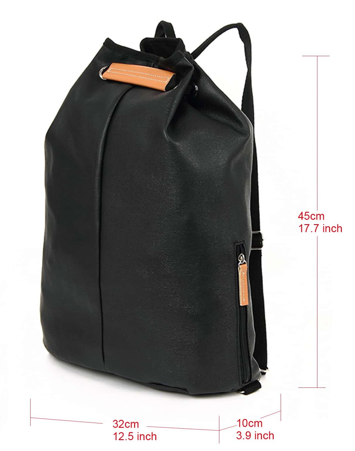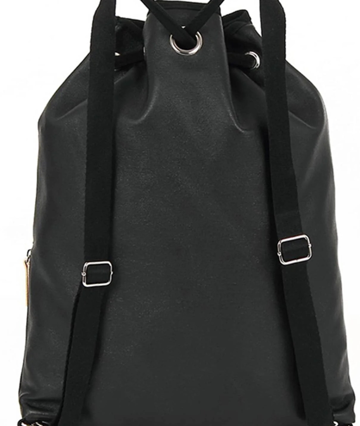 Strap Type: Adjustable Color: Black Details: Drawstring Bag Size: Medium Pattern Type: Plain Composition: Polyester, Polyurethane Material: Polyester Other Material: PU Leather