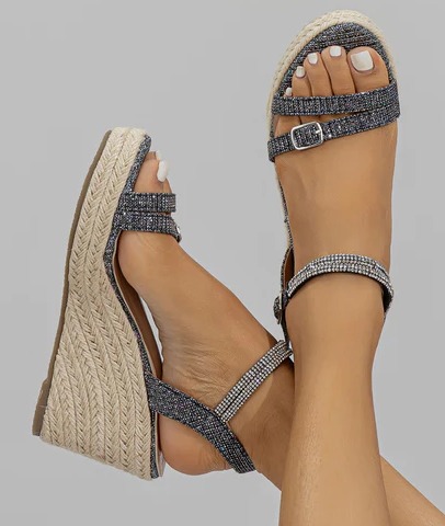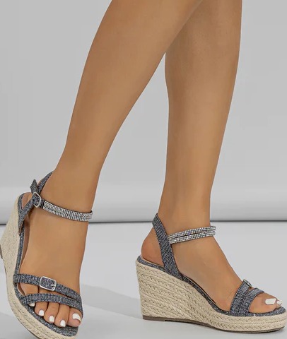 Women Rhinestone Decor Espadrille Ankle Strap Wedge Sandals, Vacation Summer Sequins Sandals