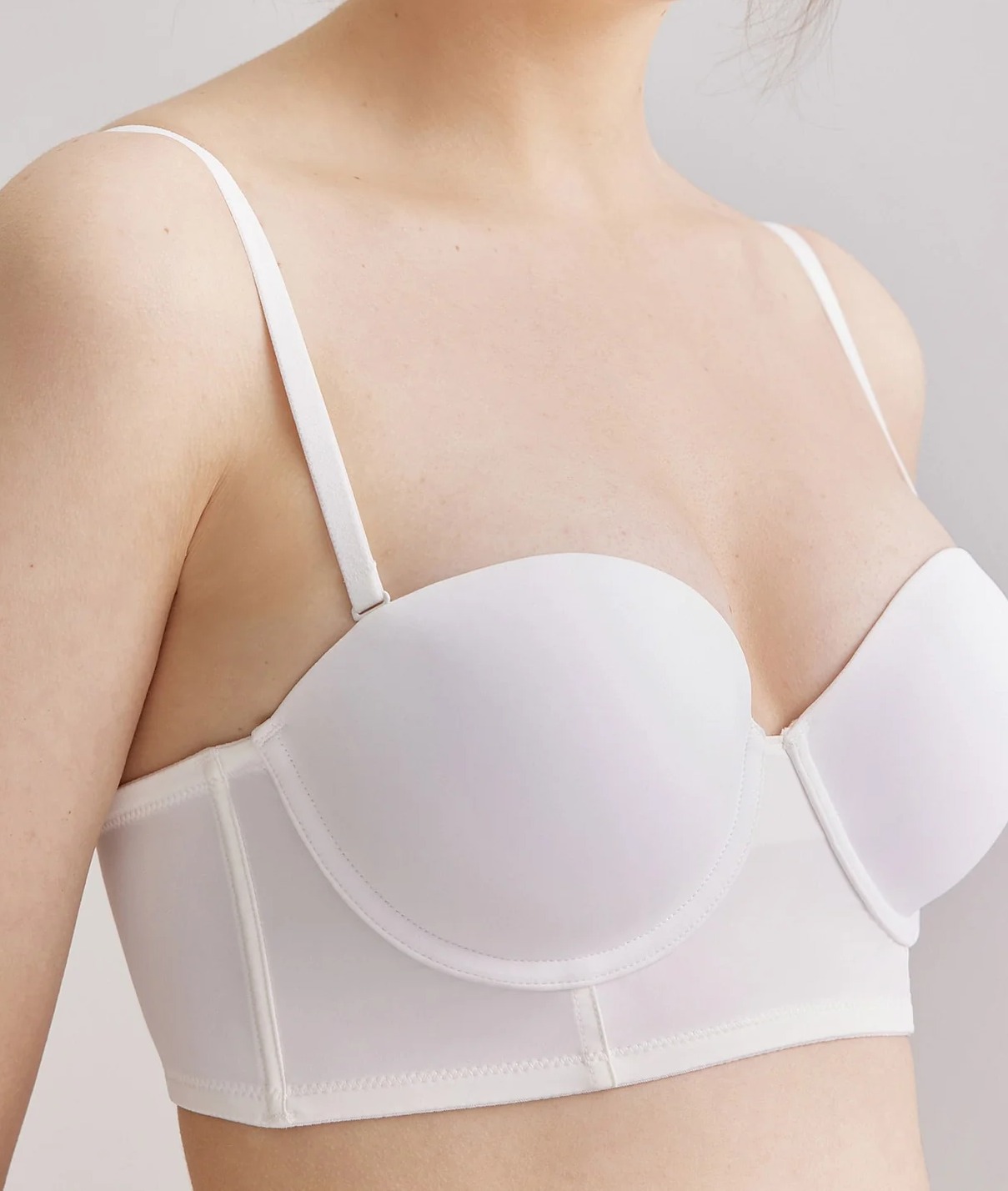 Composition: Elastane, Polyamide Material: Fabric Fabric: Slight Stretch Pattern Type: Plain Lining: Polyester Bra Type: Strapless, Balconette Color: White Wires: Underwire Location: All Fabric Type: Knitting Care Instructions: Hand wash,do not dry clean Support: Medium Support Chest pad: No Padding Lining Level: Molded