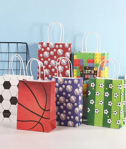 5pcs Paper Gift Bag, Modern Tennis Ball Pattern Gift Bag For Party